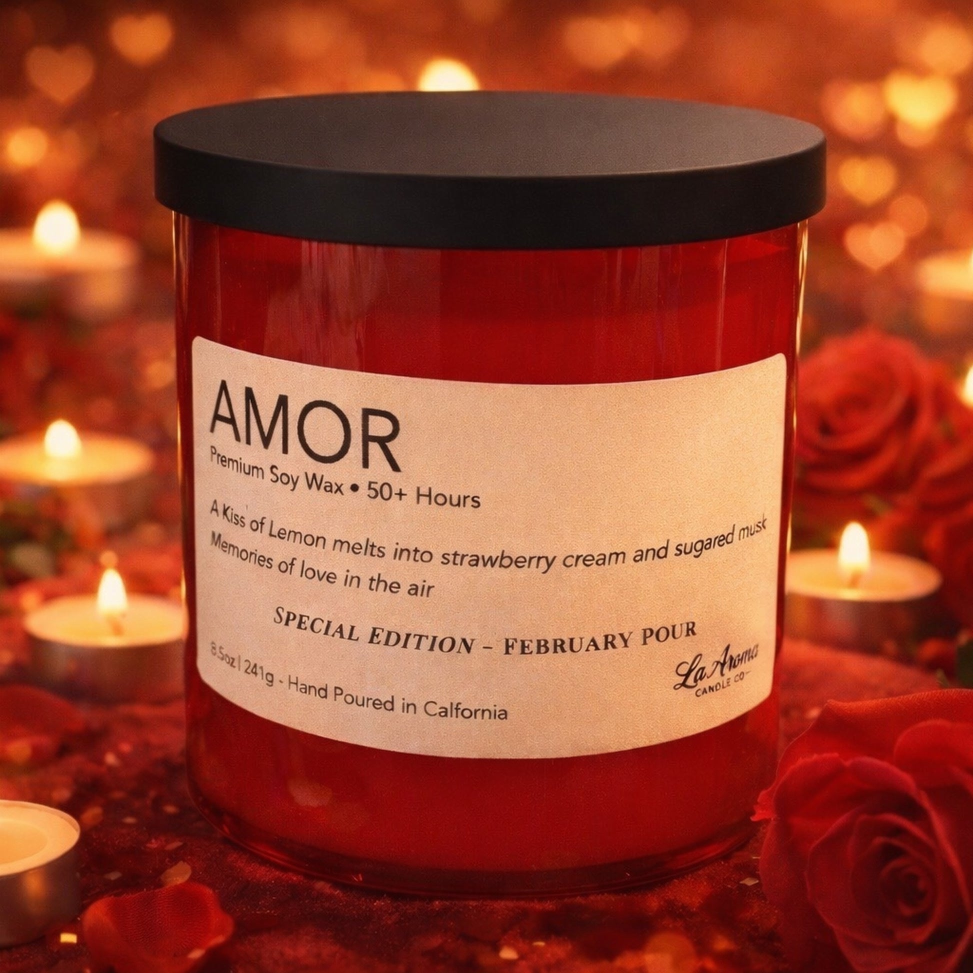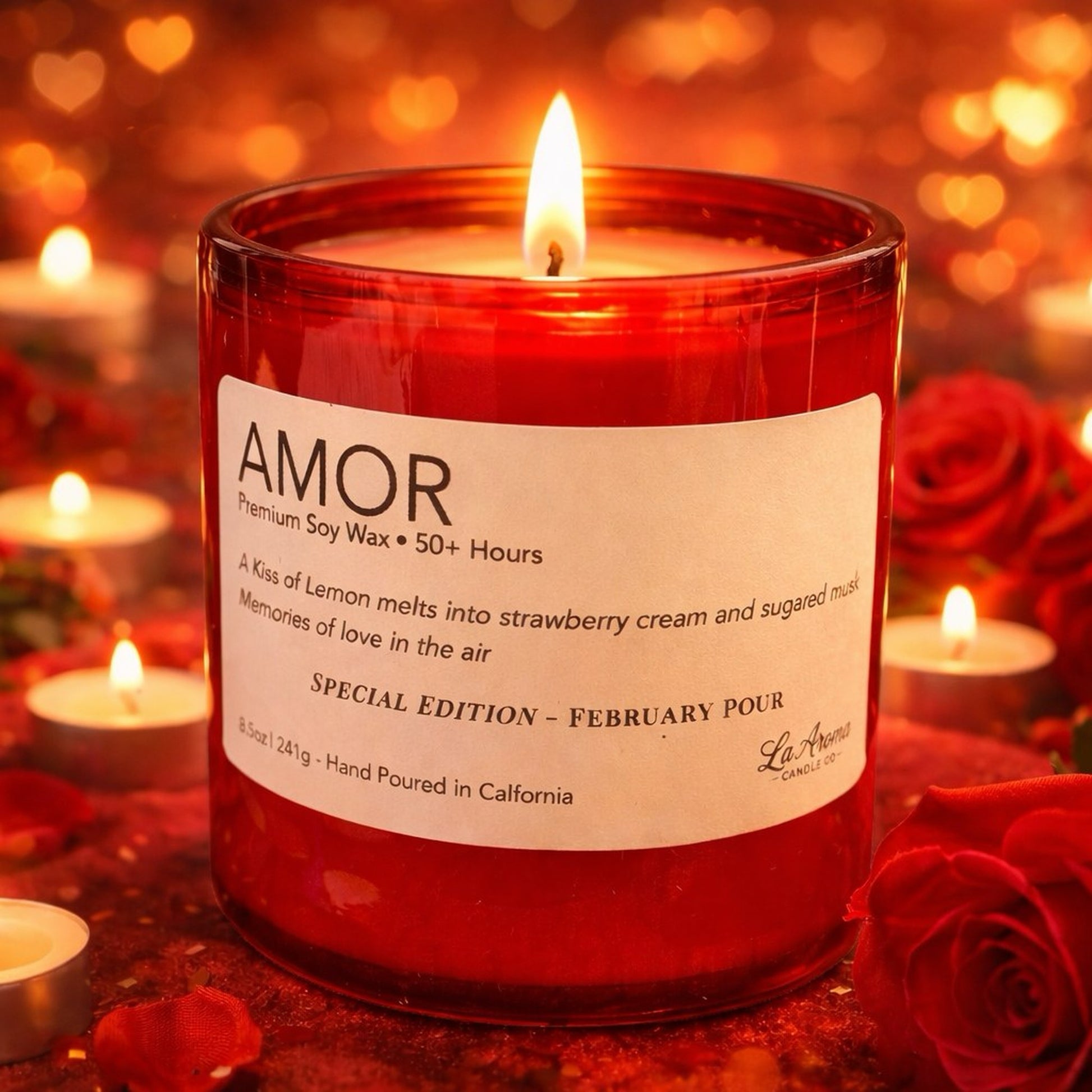 A soft kiss of bright lemon melts into strawberry cream and sugared musk, creating an aroma that feels like candlelight, comfort, and love lingering gently in the room.