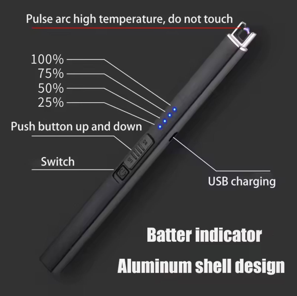 • Windproof electric arc for reliable lighting every time